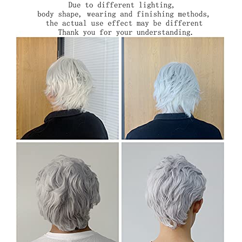 Details: Product Name: Middle-aged and elderly short wigs fluffy handsome silver gray men's wigs Wig style: fashionable and simple Wig material: high temperature silk Wig hairstyle: short fluffy hair [Applicable head circumference size]: The standard pile head circumference size is 57cm, with adjustable hooks, and the tightness can be flexibly adjusted according to the head circumference