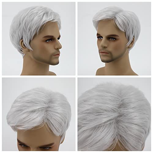 DKE and YMQ Mens Wigs, Fluffy and Realistic Short Hair Old Man Wig, Men’S Natural Daily Use Hair Suitable for Middle-Aged and Elderly People,Gray