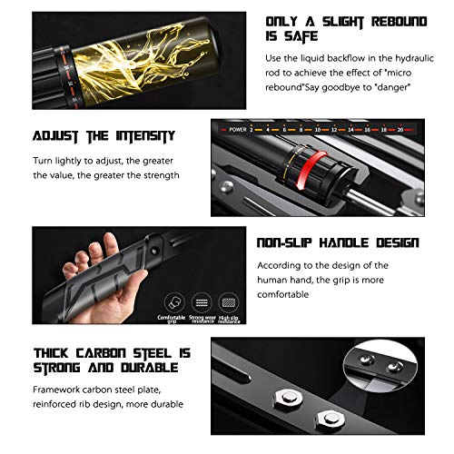 - 【Double Carbon Steel】Our hydraulic arm exerciser is made of high-density double carbon steel,engineering plastics and hydraulic cylinder,which passed 100000 endurance tests,won't easily be deformed and broken!Ergonomically designed PU handle provides you with a more comfortable grip.Special anti-slip texture design protects against accidental falling off,not only offes you with a safer fitness experience,but also offers good wear resistance for maximum longevity!